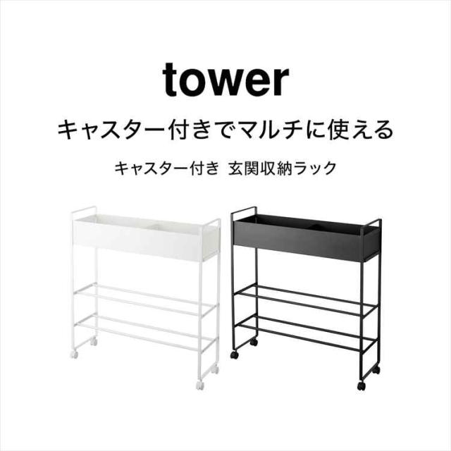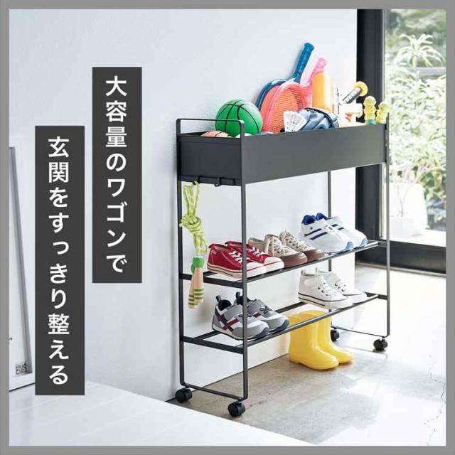 山崎実業 キャスター付き 玄関収納ラック タワー 5278 5279 tower 公式 玄関 収納 棚 靴 収納ラック スチール ワゴン シューズラック おしゃれ おもちゃ ラケット ボール 多目的 ラック 屋内 片付け ガーデニング用品 プランター フック付き ホワイト ブラック