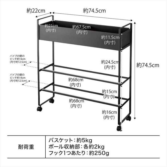 ボール収納部下段:約W68×D14(パイプ間のピッチ)×H15cm