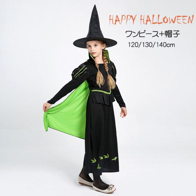ハロウィン仮装 巫女 魔女 2点セット ワンピース 帽子付き 子供服 女の子 ハロウィーン仮装 悪魔 ウィッチ コスチューム 変装 パーティー イベント 演出服 120 130 140cm