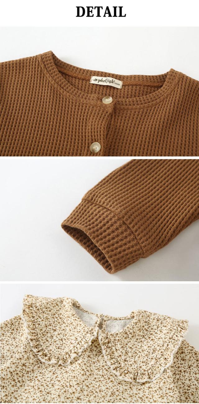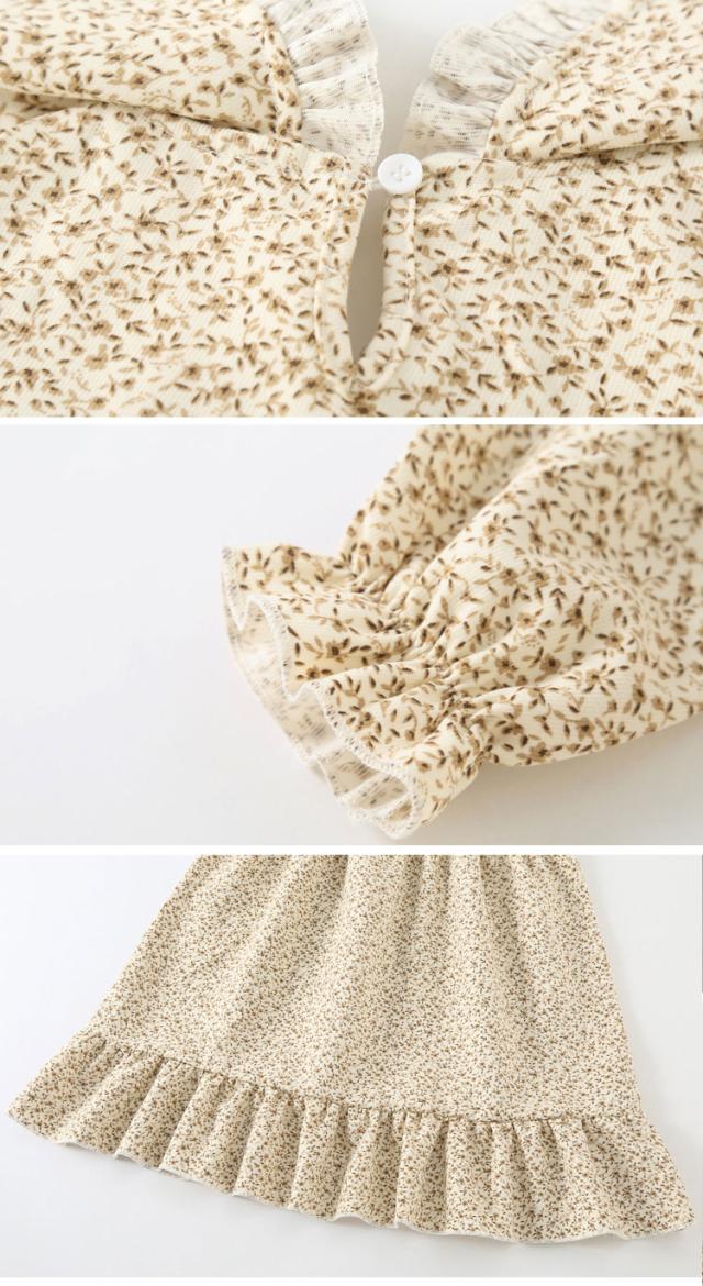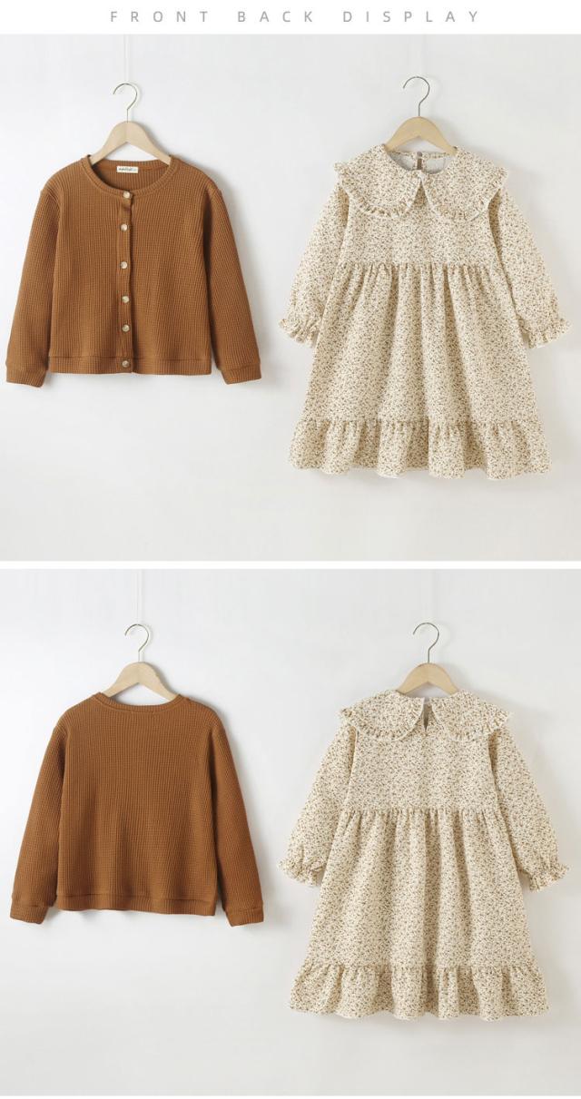 デイリーユースはもちろん、大切な日のお出掛け用にもおすすめのグッドデザインです。 春らしさもUP!素材 コットン+ポリエステル生産国 中国サイズ 【120】カーディガン丈44cm バスト40cm 袖丈32cm ワンピース丈72cm バスト76cm 袖丈40cm