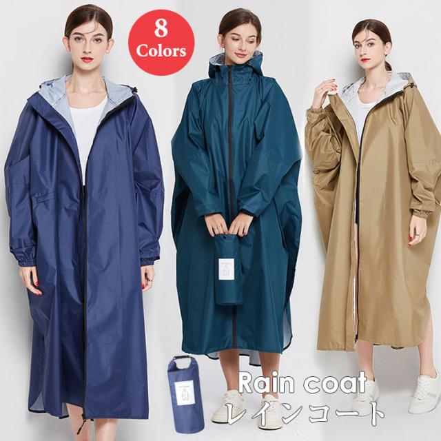レインウェア レディース ロング丈 レインコート 8色 薄手 軽量 自転車 おしゃれ アウトドア 手袋付き ママ送迎 防災 バイク 通学 通勤 梅雨対策 雨具 ゆったり フリーサイズ