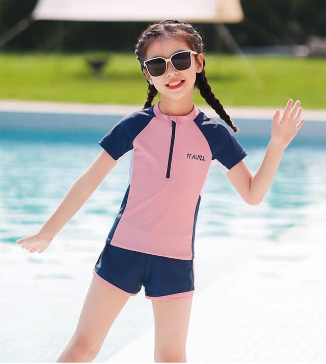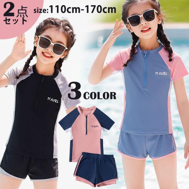 キッズ 水着 女の子 セパレート 子供水着 半袖 上下セット 子供 スイミング 小学校 中学生 高校生 ラッシュガード パンツ ジュニア スイムウェア レデイース スポーティー水着 お洒落 ガー