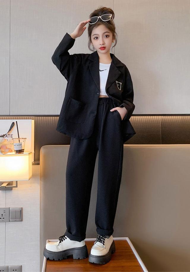子供スーツ 女の子 男の子 韓国ファッション 黒 カーキ フォーマル スーツ パンツ パンツスーツ ジャケット 卒業式 七五三 入学式 結婚式 発表会 カジュアル レジャー 子供服 120 130 1