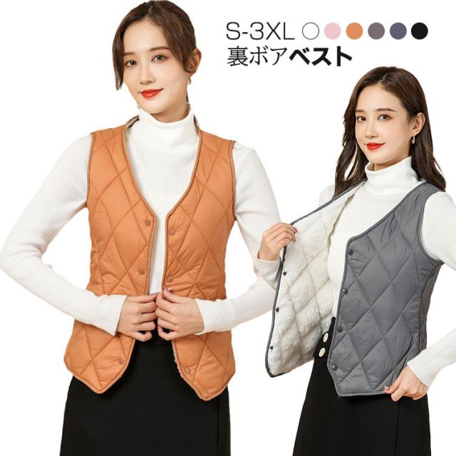 裏ボア ベスト ジレ レディース 中綿 トップス ベスト お得なセール ピンク ブラック カーキ ダークグレー オレンジ ホワイト S M L XL 2XL 3XL