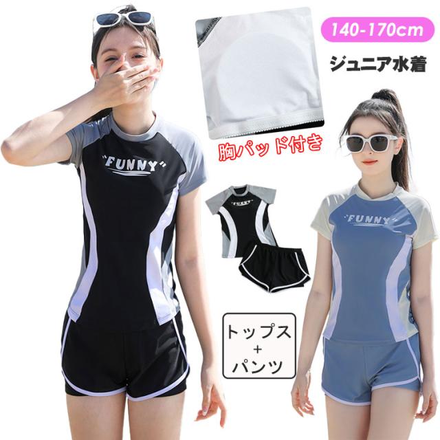 新作 キッズ 水着 女の子 2点セット ジュニア水着 上下セット セパレート スポーツウエア トップス ショートパンツ 胸パッド付き 子供 スクール水着 ガールズ スイムウェア 140 150