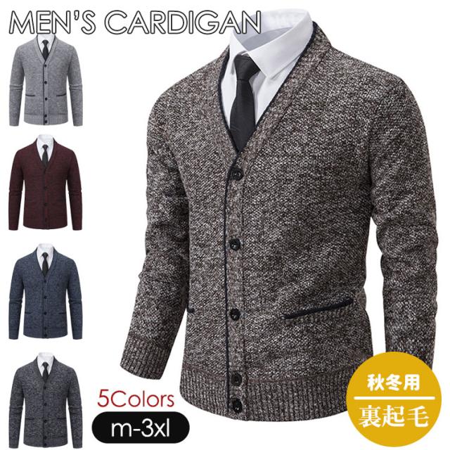 カーディガン メンズ 5色 厚手 裏起 メンズファッション お買い得 ダークグレー ブルー ワインレッド ライトグレー コーヒー色 M L XL 2XL 3XL