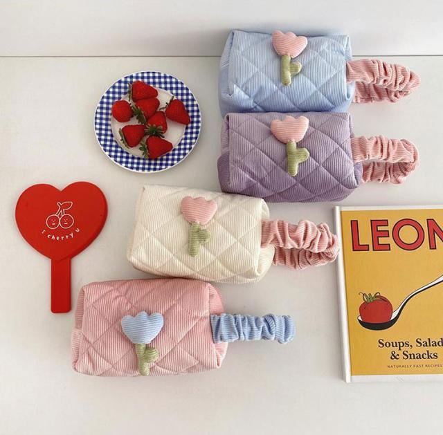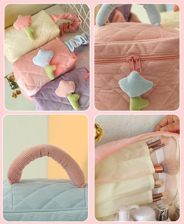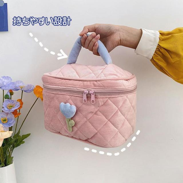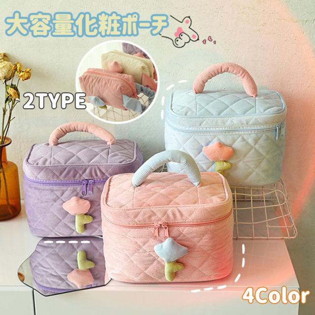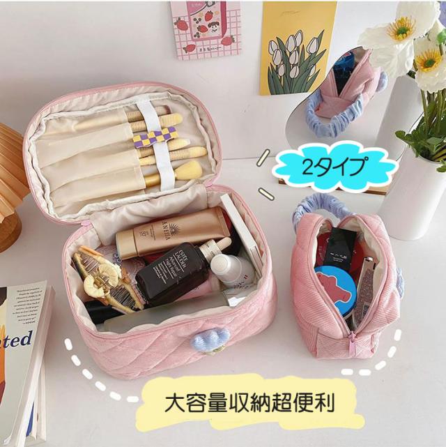 2type かわいい コスメバッグ メイクポーチ 化粧ポーチ コーデュロイ生地 バニティケース トラベル 学生 女の子 ガールズ 収納バッグ 化粧品 収納 雑貨 小物入れ 軽量 機能的 大容量 4色
