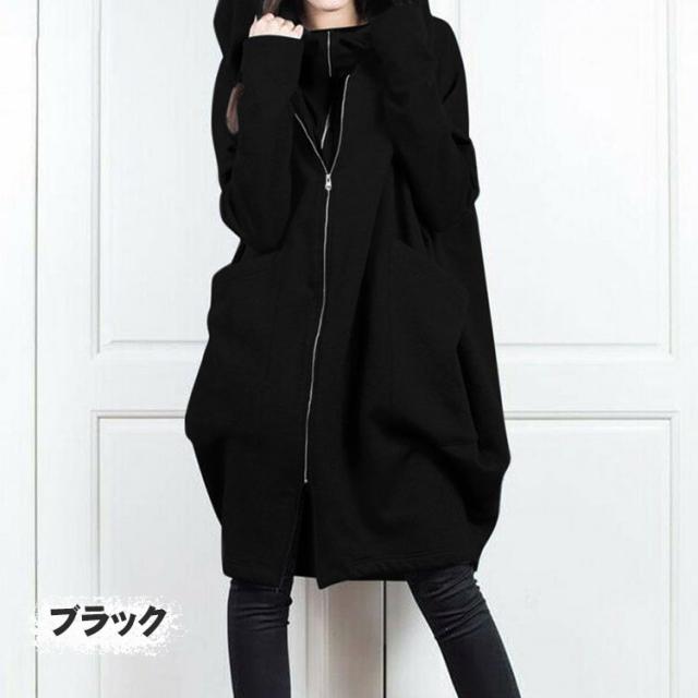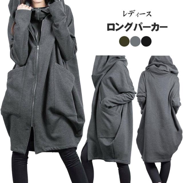 レディース ファッション ロングパーカー フード付き パーカー 秋冬 韓国ファッション 大人 ナチュラル 体型カバー トップス アウター ジャケット フード 羽織 ゆったり 大きめ ジッパー 3色 グ