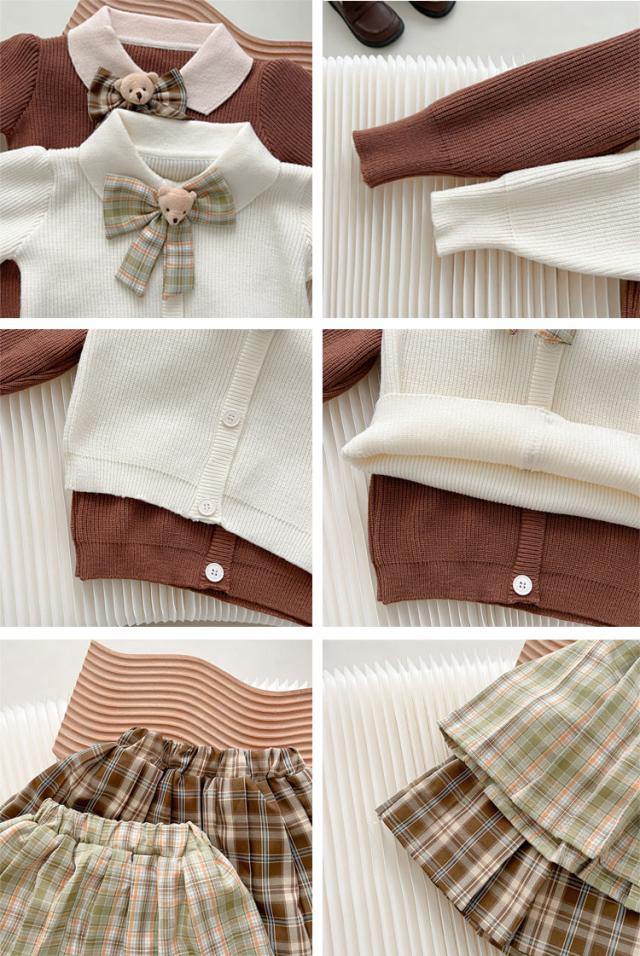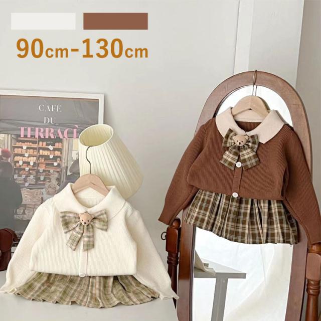 2点セット 女の子 セットアップ フォーマルスーツ トップス カーディガン スカート ニットセーター チェック柄スカート 入卒園式 入学式 スーツ 子供 キッズ プ お受験に ガールズ 発表会
