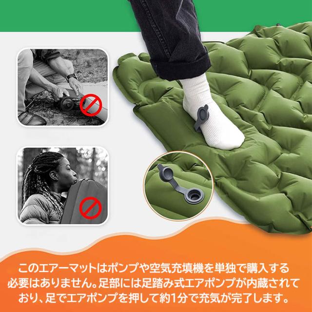 エアーマット キャンプ マット 1人用 2人用 車中泊マット 足踏み式 エアーピロー付き エアマット 災害マット 防災グッズ キャンプ用品 テントマット 車中泊 厚手 軽量 コンパクト 防水