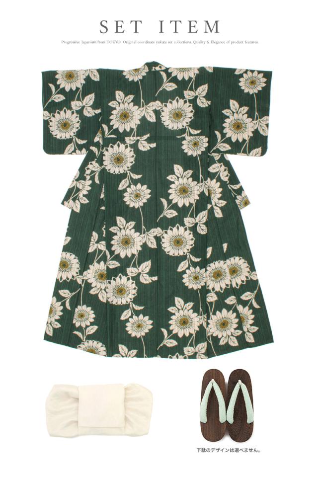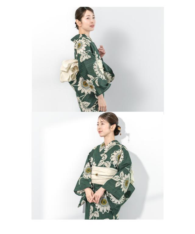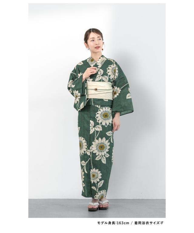 浴衣 セット レディース 浴衣セット 兵児帯 2025新作 3点セット 簡単 涼しい 緑 白 ベージュ ひまわり レトロ 花柄 綿 大人 おしゃれ トレンド 帯 下駄 フリーサイズ 送料無料
