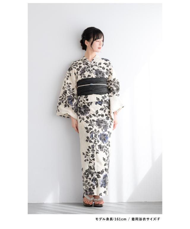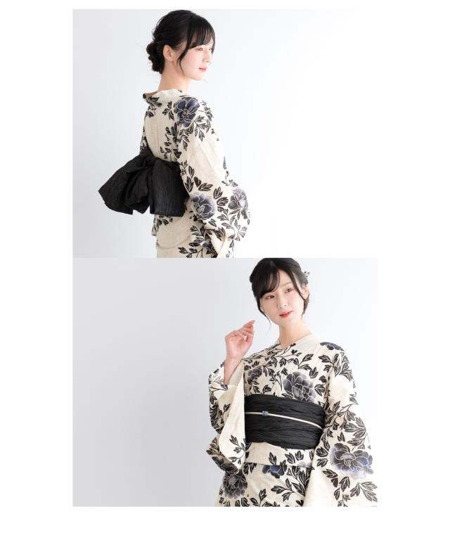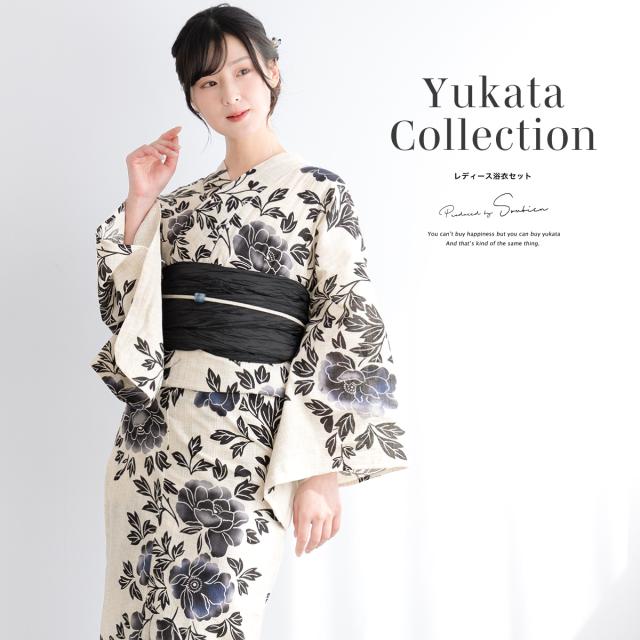 浴衣 セット レディース 浴衣セット 兵児帯 2025新作 3点セット 簡単 涼しい 黒 紺 ベージュ レトロ 花柄 フラワー 綿麻 大人 おしゃれ トレンド 帯 下駄 S フリー 送料無料