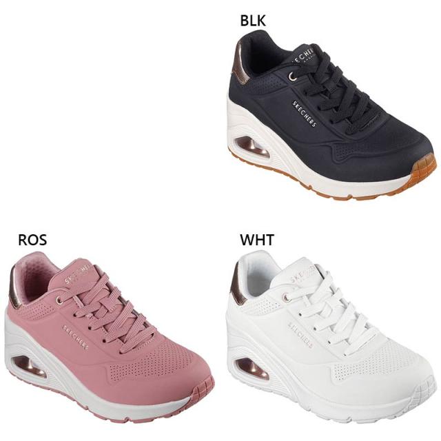 スケッチャーズ レディース UNO WEDGE-HI STEPS スニーカー 靴 シューズ カジュアル 紐靴 厚底 ホワイト 白 ブラック 黒 ピンク 送料無料 SKECHERS 177520