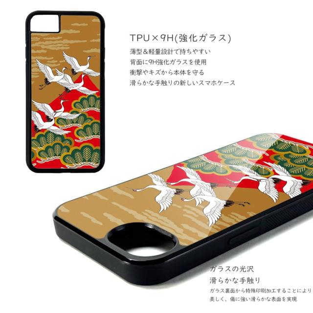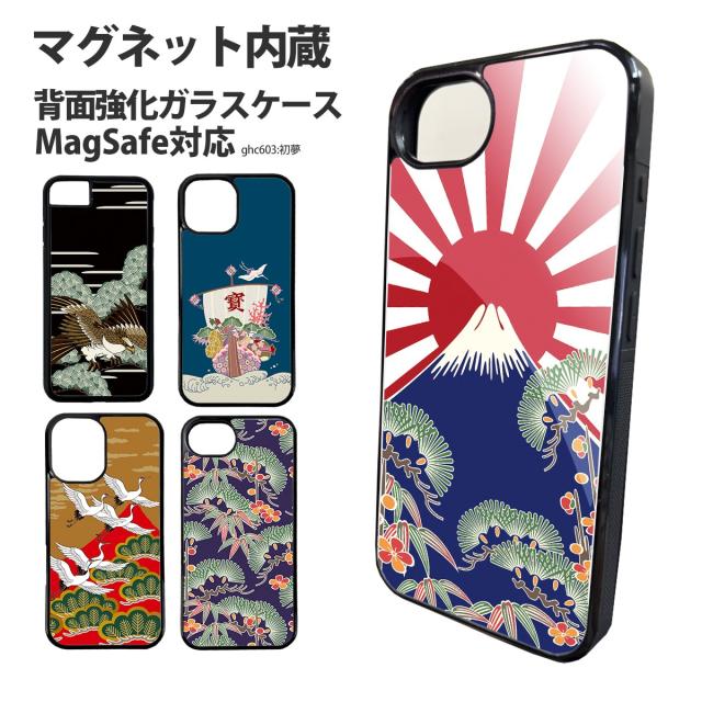 スマホケース 背面ガラス iPhone 17 iPhone 16e SE 第3世代 バンパーケース デザイン 強化ガラス MagSafe マグネット内臓 iPhone15 SE 第2世代 アイフォン 初夢 和柄 寿 鶴 旭 富士 初夢 和 鷹 松 宝船 梅 白鶴