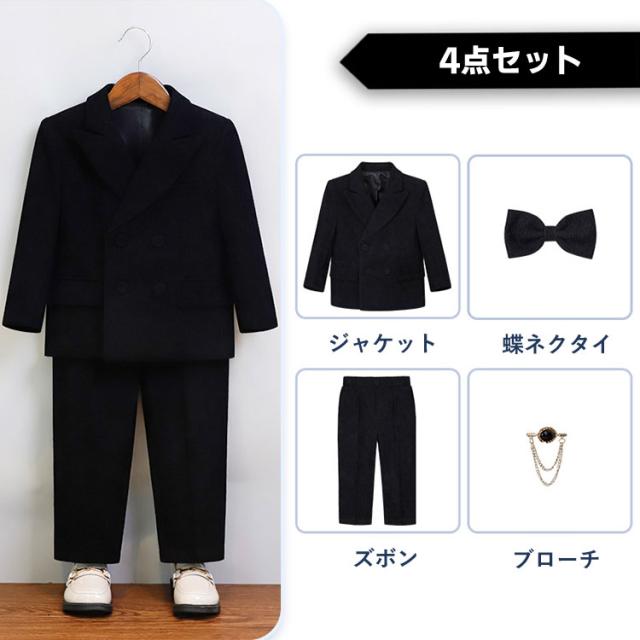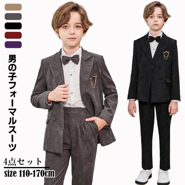 子供服 男の子 スーツ フォーマルスーツ 4点セット 男の子スーツ 結婚式 クリスマス パーティー 発表会 ステージ衣装 無地 ジュニア 110 120 130 140 150 160 170cm フ