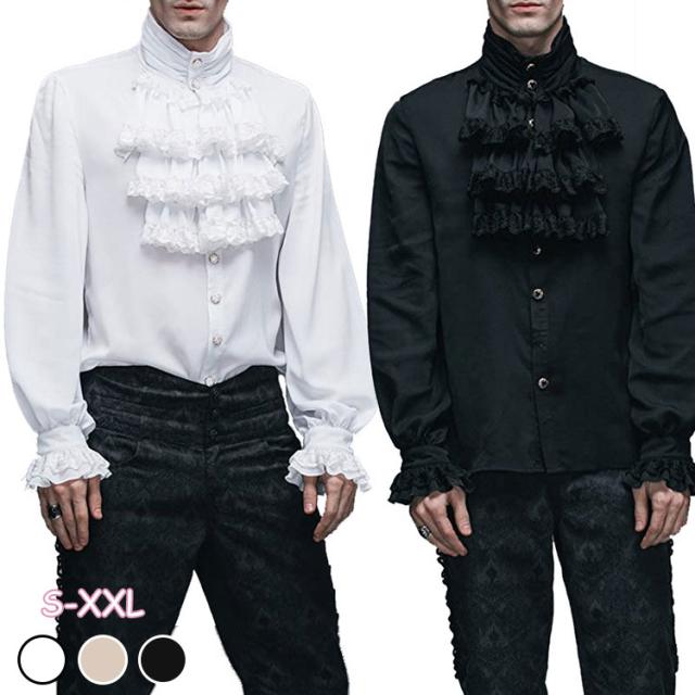 メンズ ブラウス 中世 ゴシックレトロ コスプレ 変装 仮装 ブラウス 割引 ホワイト ベージュ ブラック S M L XL XXL