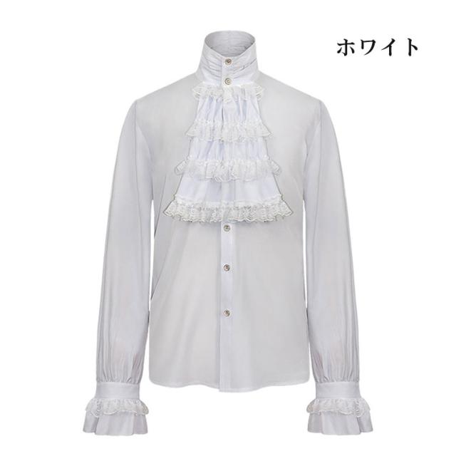 メンズ ブラウス 中世 ゴシックレトロ ルネッサンス シャツ フリル付き 長袖 立ち襟 スチームパンクトップス フリルシャツ ハロウィン仮装 コスプレ 社交ダンス衣装 学園祭 撮影 海賊 王子様 貴族