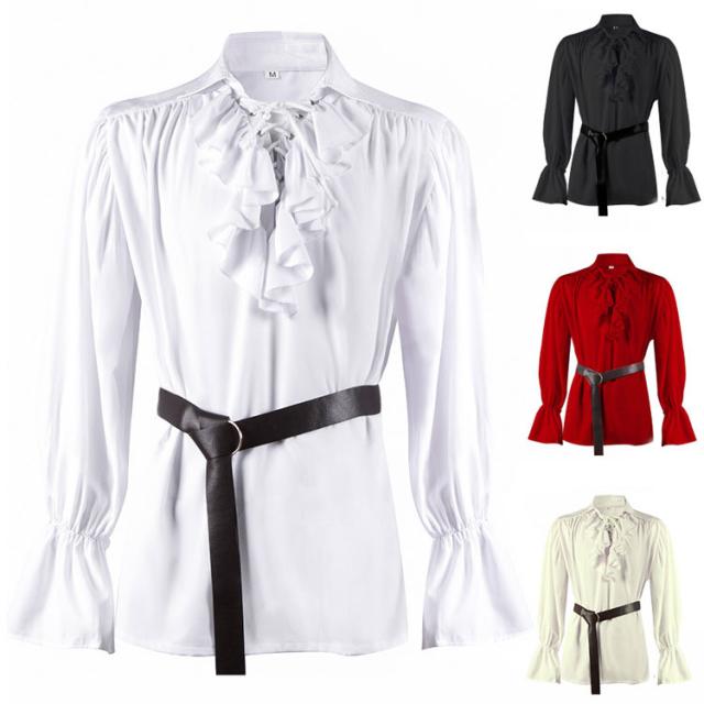 メンズ シャツ ブラウス 中世 ゴシックレトロ ルネッサンスシャツ レースアップ フリル付き 長袖 スチームパンクトップス クリスマス ハロウィン仮装 コスプレ パーティー 学園祭 撮影 舞台 ステー