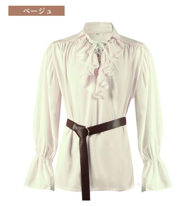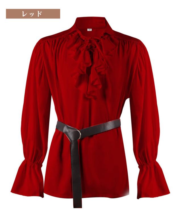 フリル付きの長袖と立ち襟が、ルネッサンスの優雅さを演出します。スチームパンクやハロウィンの仮装、社交ダンスや演劇の衣装としても最適です。