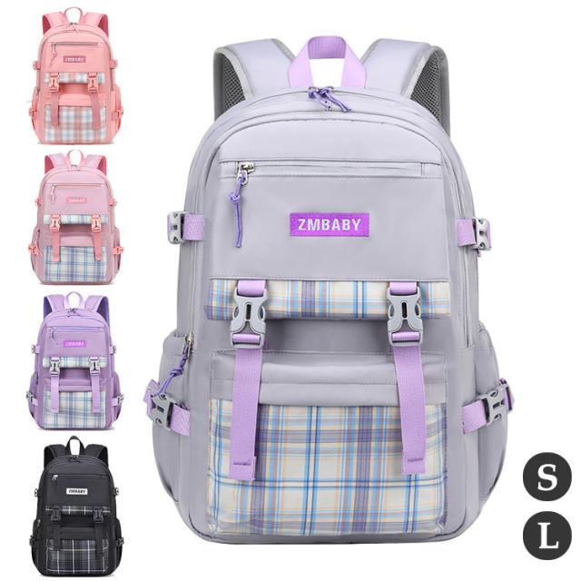 リュック 子供 キッズ リュックサック バッグ バックパック 大容量 軽量 女の子 男の子 小学生 通学 お出かけ 修学旅行 遠足 チェック柄 撥水生地 子供の日 プレゼント 誕生日ギフト S L 5