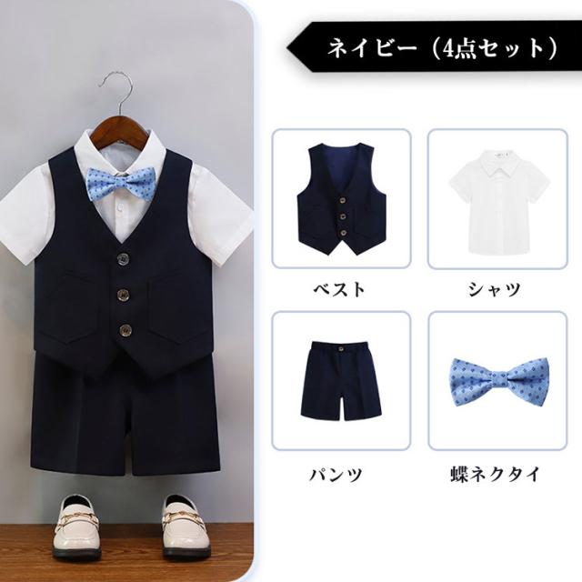 男の子 スーツ 3点セット 4点セット 半袖 キッズ ファッション フォーマルスーツ おしゃれ 男の子スーツ 無地 入学式 卒業式 結婚式 パーティー 発表会 誕生日プレゼント 七五三 子供服 半袖シ