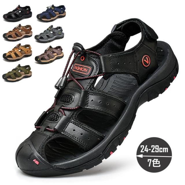 サンダル メンズ スポーツサンダル アウトドア ストラップ ウォーキングサンダル 外履き 夏用 屋外 キャンプ トレッキング 通気 つま先保護 マジックテープ 滑り止め 7色 大きいサイズ 24-29
