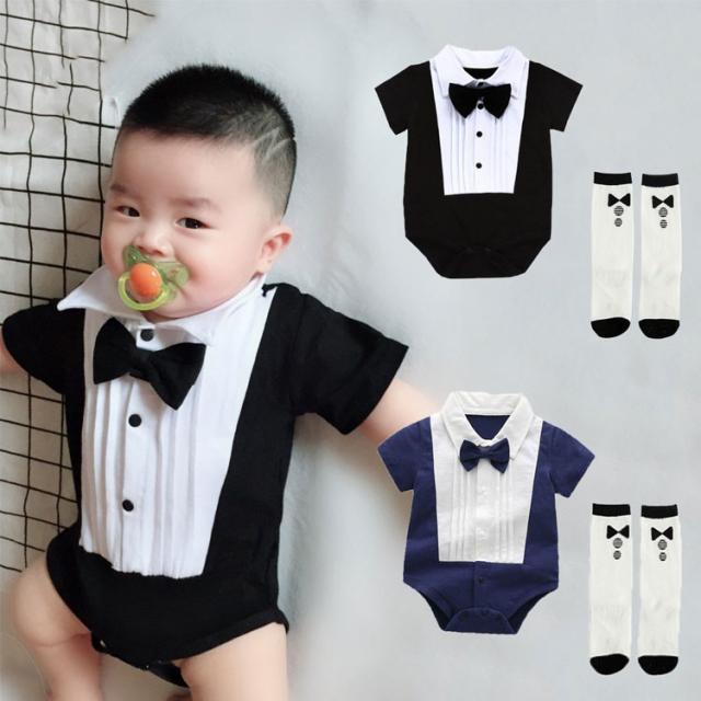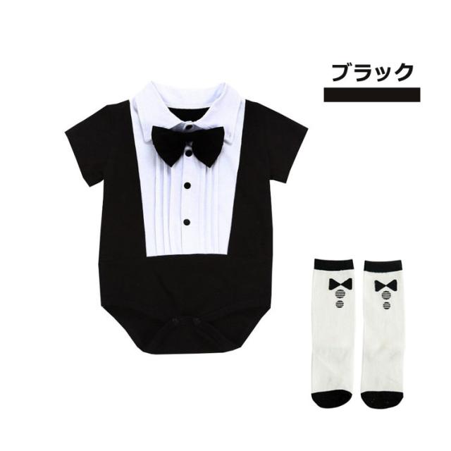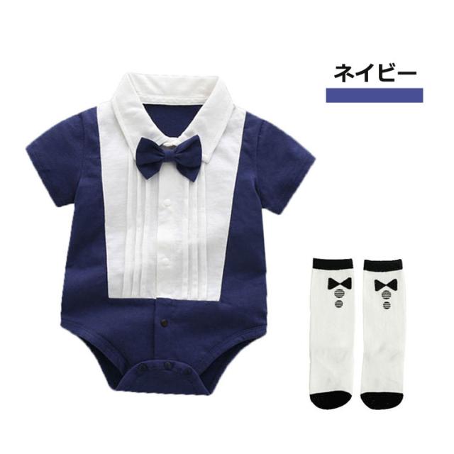 ベビー服 ロンパース 男の子 フォーマル ベビー カバーオール 夏服 スナップボタン 靴下付き 紳士風 赤ちゃん インスタ映え 66 73 80 90 子供服 新生児 オールインワン ワンピース イベ
