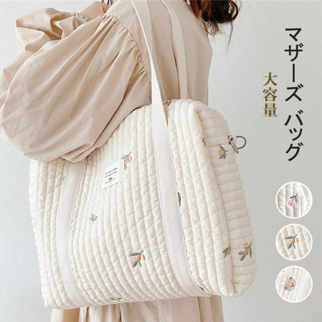マザーズバッグ 大容量 トートバッグ トート かわいい サブバッグ 入院バッグ 大きめ 刺繍 ファスナー 2way 保育園 軽い 軽量 韓国 おしゃれ くま チューリップ オリーブ ベビーカーバッグ