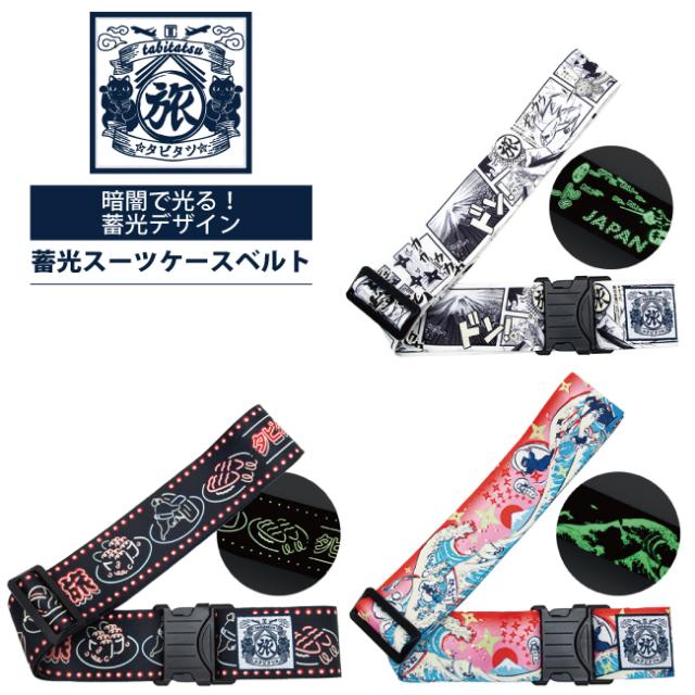 タビタツ 蓄光 スーツケースベルト 暗闇で光る 日本 和柄 和風 お土産 (スーツケース 便利グッズ かわいい キャリーケース おしゃれ キャリーバッグ ベルト 目印 トラベルグッズ キャリーバック キャリー 海外旅行グッズ 旅行用品 出張 可愛い 海外 トラベル用品)