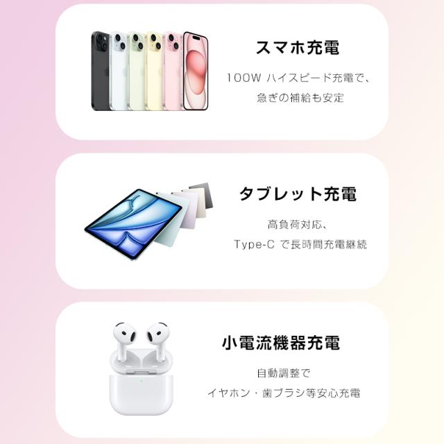- ピンク&グリーンの色味は写真通りで満足ですし、ケーブルバンド付きなのも良かったです。ただ、スマホケースを付けたままだと端子が差さらず、毎回外す必要がある点は不便に感じました。