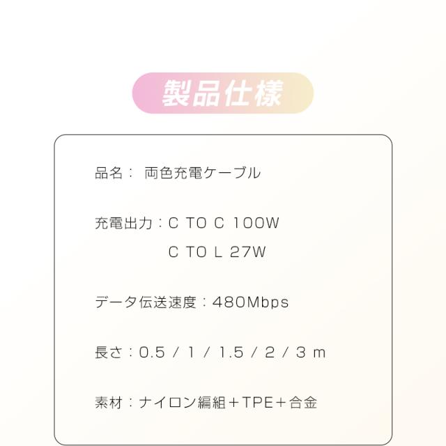 品名: Type-C to Type-C/Type-C to iPhoneケーブル