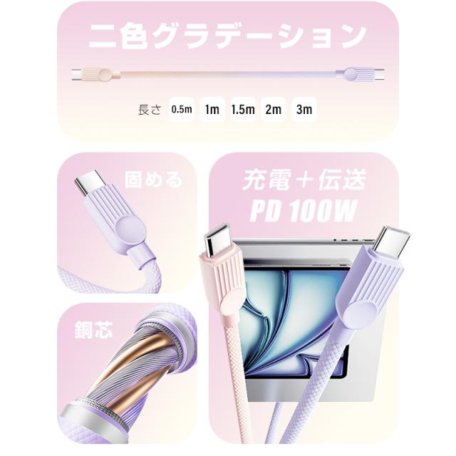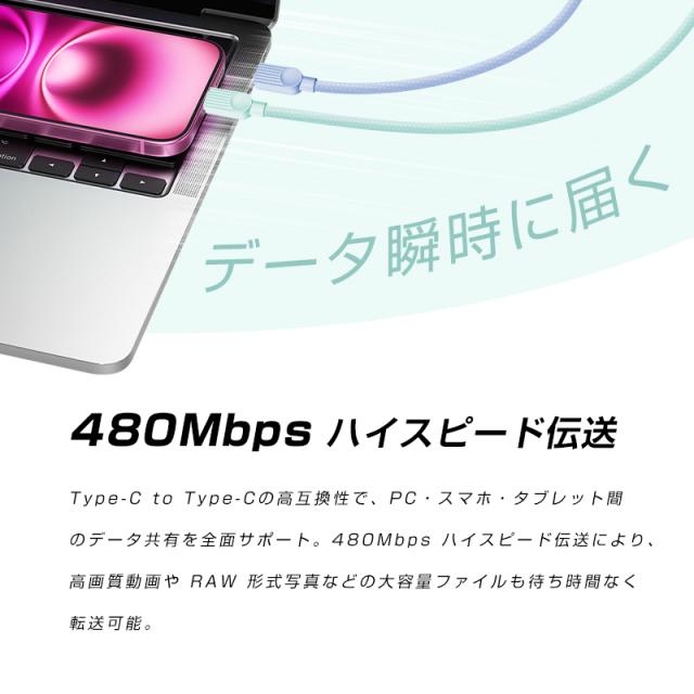 Type-C to Type-Cケーブル Type-C to iPhone 長さ0.5m/1m/1.5m/2m/3m PD100W 急速充電 480Mbps 高速データ転送 USB2.0規格 断線に強い ナイロン編み iPhone17充電ケーブル iPad 【2026最新】 パワーデリバリー対応 結束バンド付き 収納便利【PL保険加入済み製品・安心】