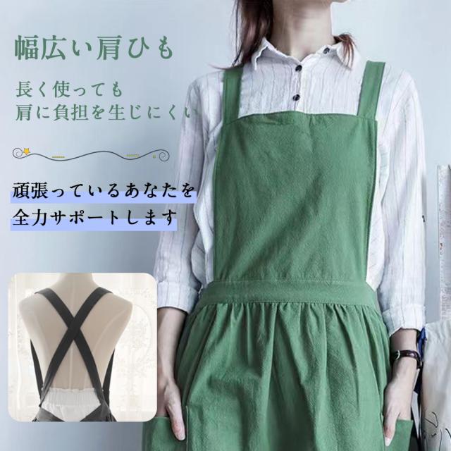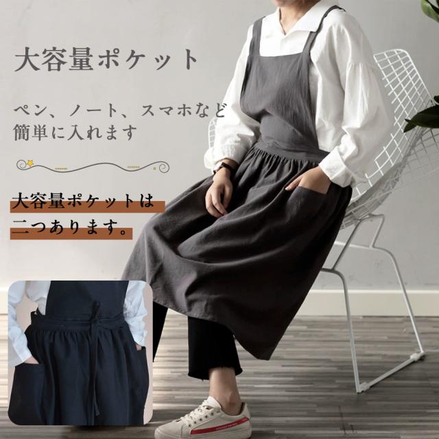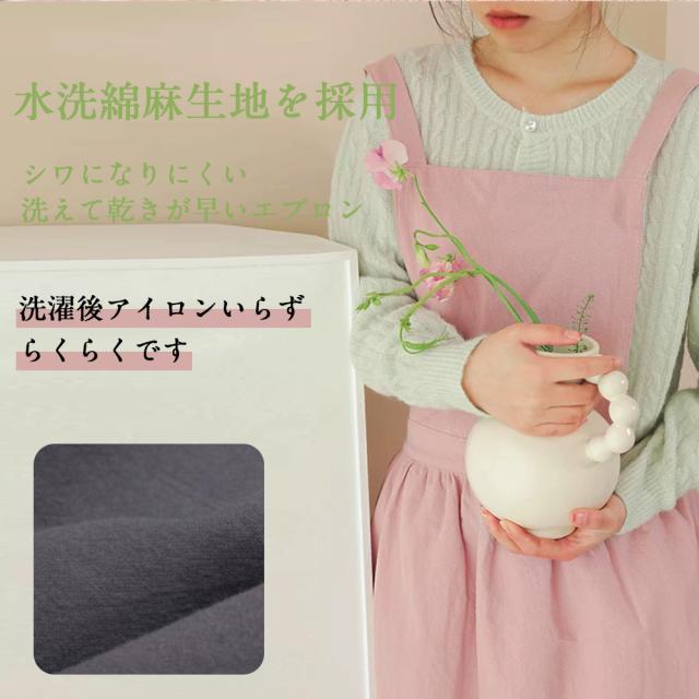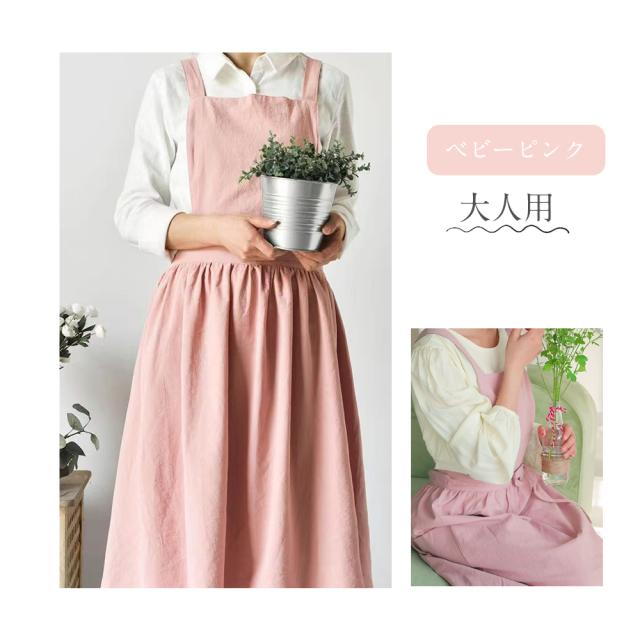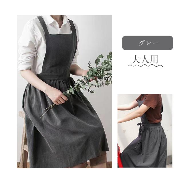 母に応援!リネン エプロン おしゃれ ワンピース レディース メンズ 北欧 保育士 カフェ 安い ロング丈 かわいい ナチュラル