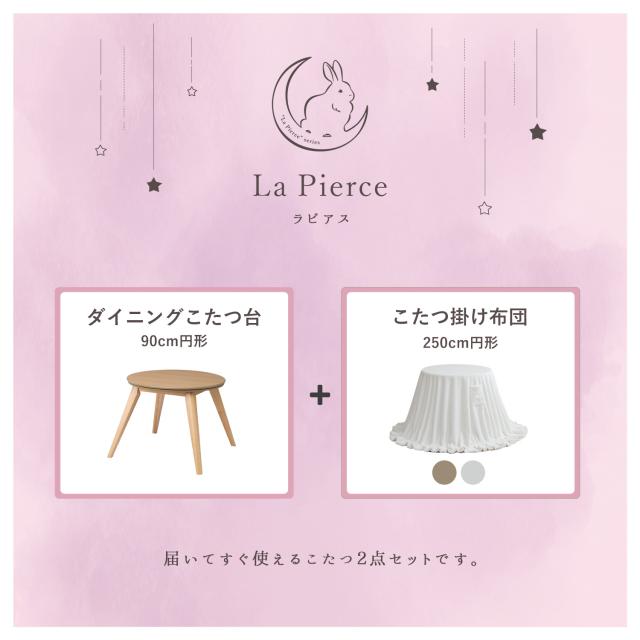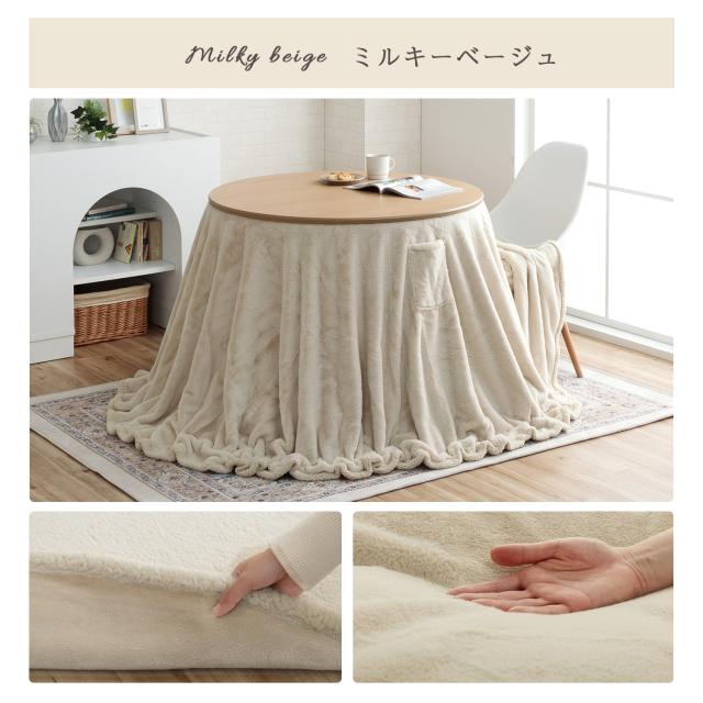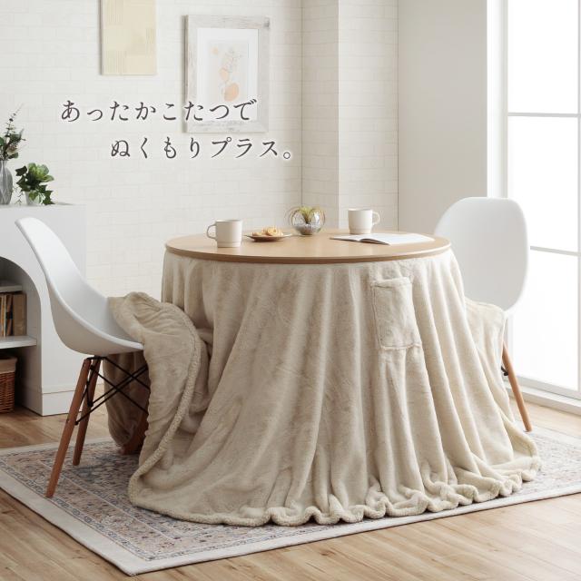 こたつ セット 円形 ダイニング こたつ台 テーブル ハイタイプ 「 ラピアス カフェこたつ2点セット 90cm円形 」高さ70cm 台:直径90cm カバー:直径245cm 一人暮らし 北欧 おしゃれ 省エネ 洗える ラビットファー