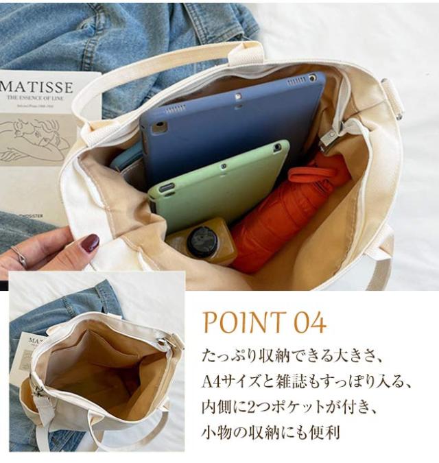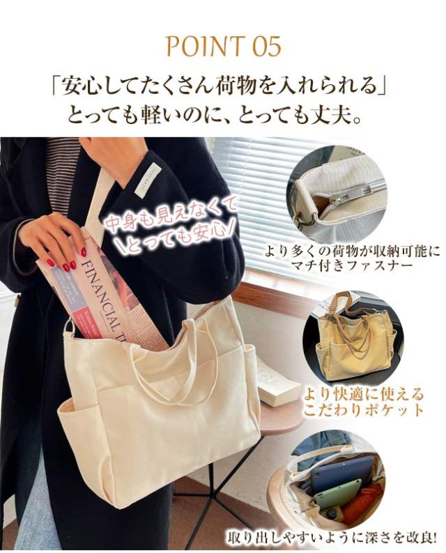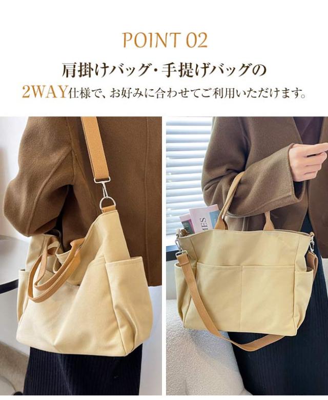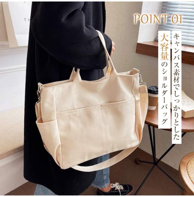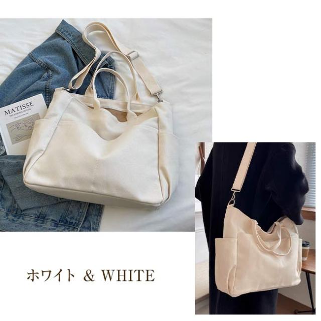 ★4/17まで8%OFFクーポン★ トートバッグ ショルダーバッグ 2way キャンバス レディース メンズ A4 7つボケット ファスナー付き 斜めがけ 肩掛け 大容量 軽量 鞄 無地 ファッション 通勤 通学