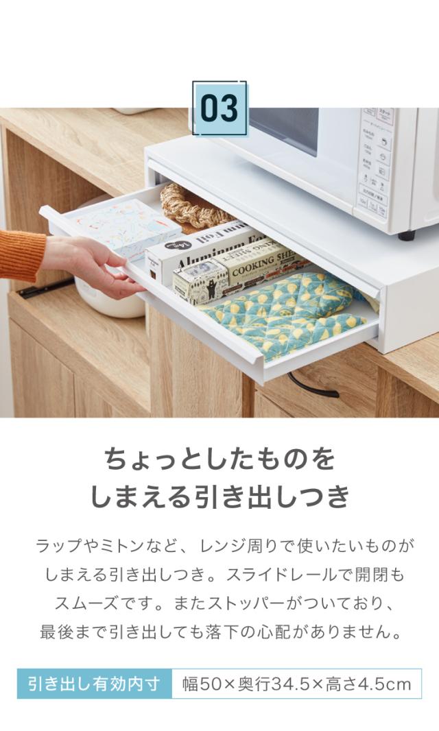 レンジ調理の出し入れや炊飯器からご飯をよそう時、お弁当の準備など、ちょい置きスペースができるだけで効率もアップ。