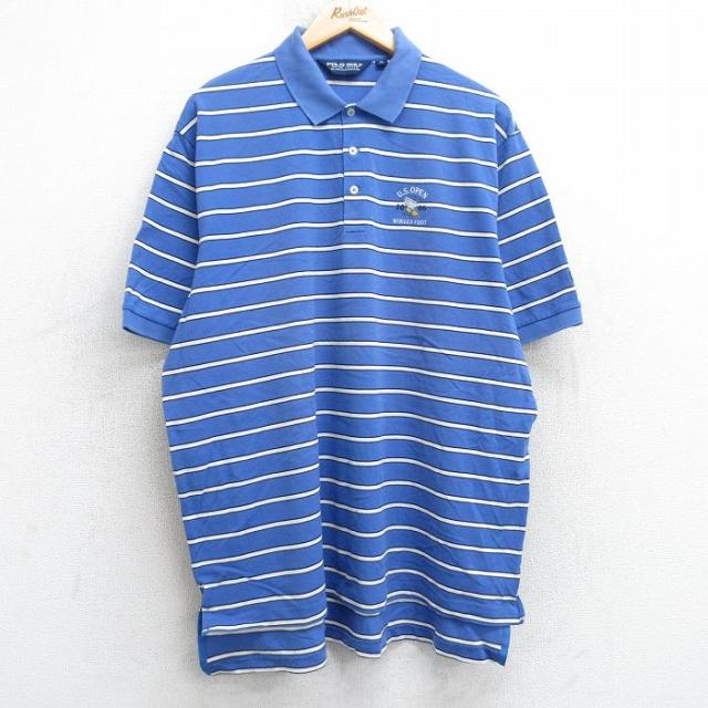 【商品名】 XL★古着 ラルフローレン ポロゴルフ 半袖 ブランド ポロ シャツ メンズ 00年代 00s ウイングフット 鹿の子 大きいサイズ コットン 青他 ボーダー