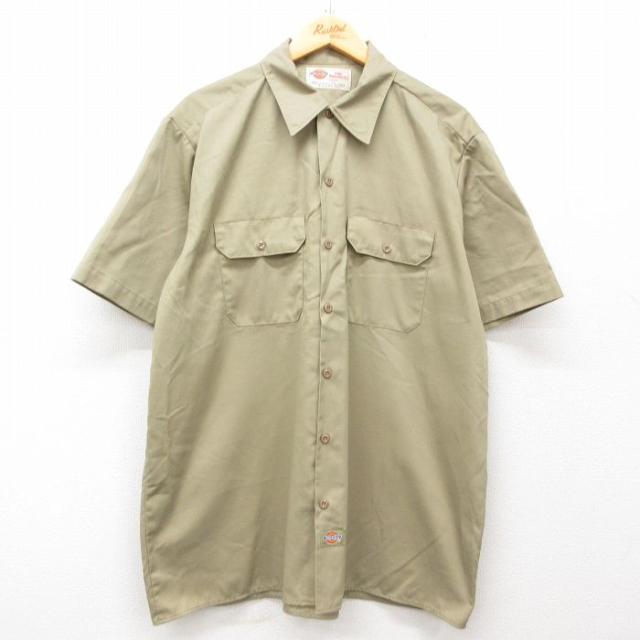 【商品名】 XL★古着 ディッキーズ 半袖 ワーク シャツ メンズ 00年代 00s ロング丈 ベージュ