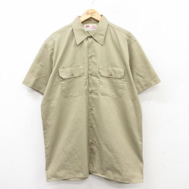古着 ディッキーズ Dickies 半袖 ワーク シャツ メンズ 00年代 00s ロング丈 ベージュ カーキ XLサイズ 中古 トップス 中古 古着