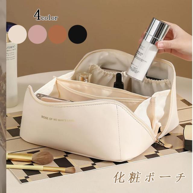 化粧ポーチ 大容量 機能的 ポーチ 自立 小物入れ 可愛い コスメポーチ トラベルポーチ メイクポーチ バニティケース コンパクト マチあり 大きめ 大容量 バニティバッグ 合皮 機能的 収納 整理 自立 仕分け ポケット 収納 シンプル 化粧バッグ PU レザー つや消し かわいい