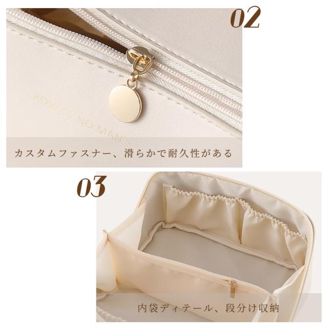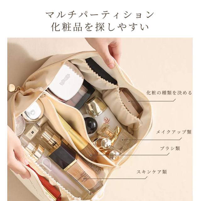 【マルチ機能デザイン】この化粧ポーチには複数の仕切りとポケットがあり、様々な化粧品やスキンケア製品を便利に収納・整理できます。化粧品を整然と整頓することができます。