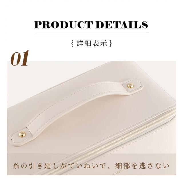 【マルチ機能デザイン】この化粧ポーチには複数の仕切りとポケットがあり、様々な化粧品やスキンケア製品を便利に収納・整理できます。化粧品を整然と整頓することができます。【大容量スペース】この化粧ポーチは十分な容量があり、必要な化粧品、ブラシ、小道具などを収納することができます。日常生活や旅行での使用において、あなたのニーズを満たします。【耐久性のある素材】高品質の素材を使用しており、耐久性と防水性を備えています。化粧品を外部の影響から保護し、化粧ポーチの長期使用を確保します。【持ち運びの便利さ】コンパクトなデザインで、手提げバッグやトラベルバッグに収納しやすく、いつでもどこでもメイクをすることができます。【スタイリッシュな外観】美しいデザインで、洗練された外観を持ち、化粧ポーチをファッションアイテムとして使えます。個人のセンスとスタイルを表現する一品となります。