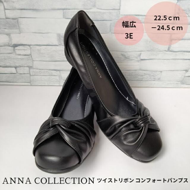 幅広 ワイド 3E アンナコレクション レディース 靴 シューズ パンプス フォーマルカジュアル カジュアルシューズ ブラック 黒 送料無料 anna collection 527