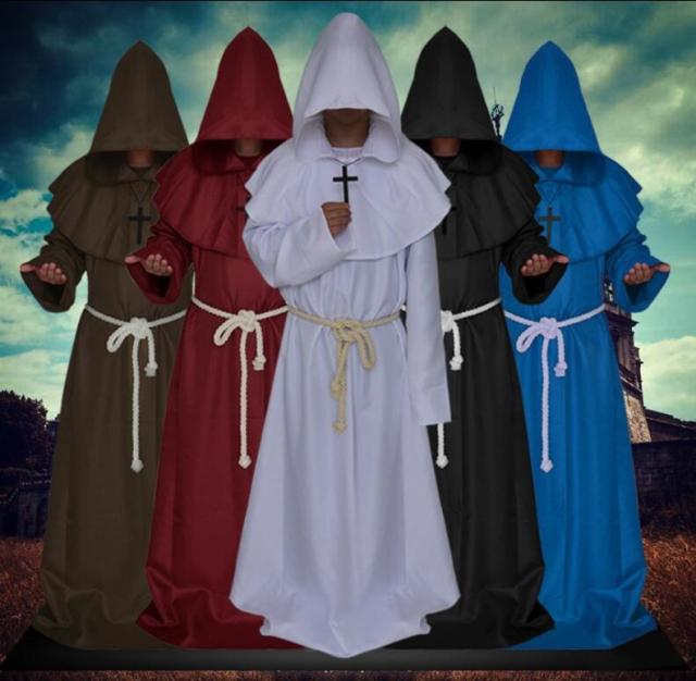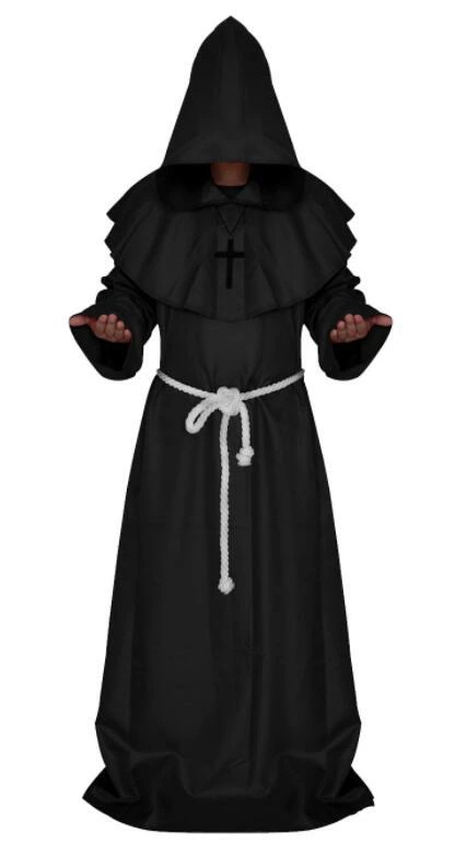 メンズ ハロウィン仮装 コスプレ衣装風 コスチューム チュニック ロング丈 フード付き 僧侶服 魔法師 死神 中世紀 欧米風