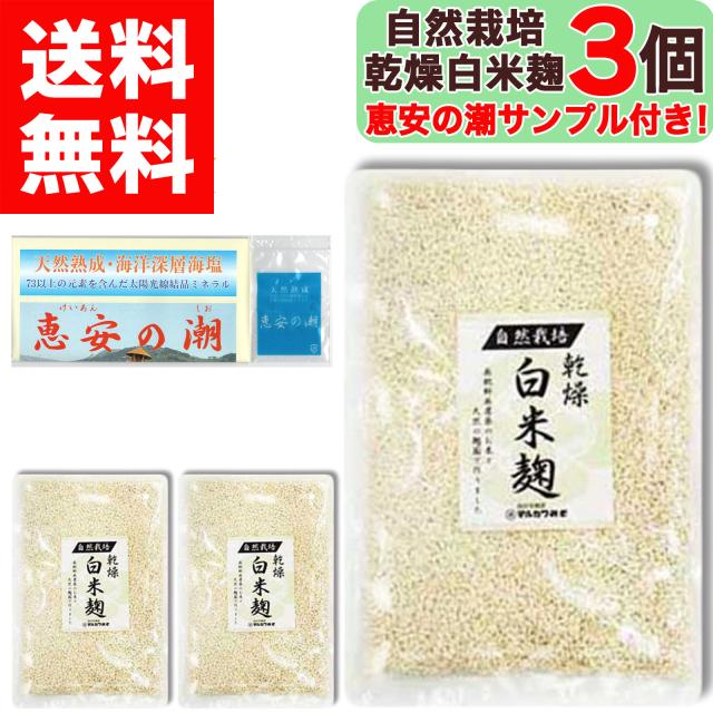 【美味しいお塩のサンプル付き!】 マルカワみそ 自然栽培 白米麹 ( 乾燥タイプ ) 300g × 3個 無農薬 無肥料 自家採取 蔵つき麹菌 地下水仕込み 国産 米麹 こめこうじ こうじ 麹 発酵 醗酵 あまざけ 甘酒 塩麹 味噌 越前 マルカワ味噌 まるかわ味噌 まるかわ みそ 味噌