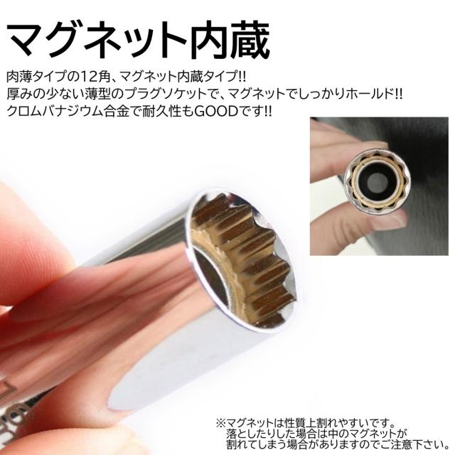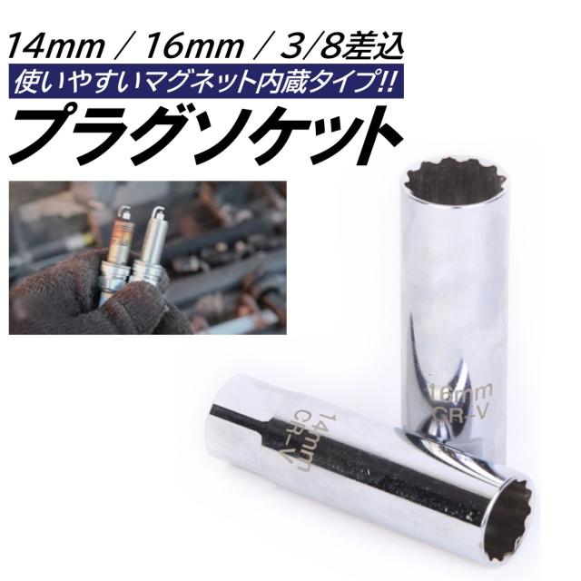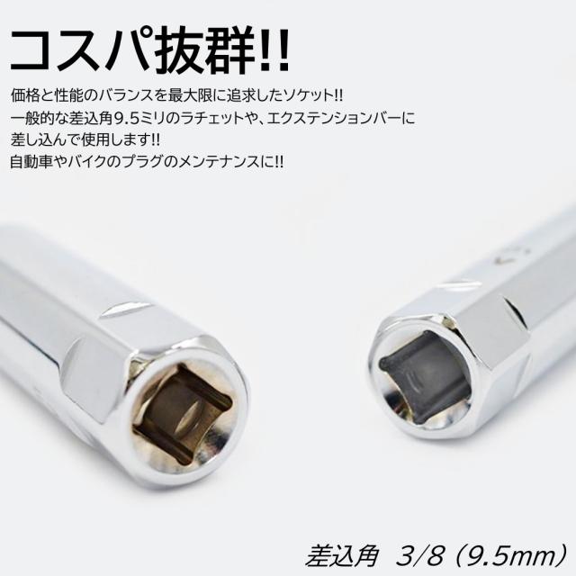 プラグレンチ スパークプラグレンチ 選べる 14mm 16mm マグネット式 プラグレンチ 12角 3/8 9.5mm 差込角 プラグソケット ソケット