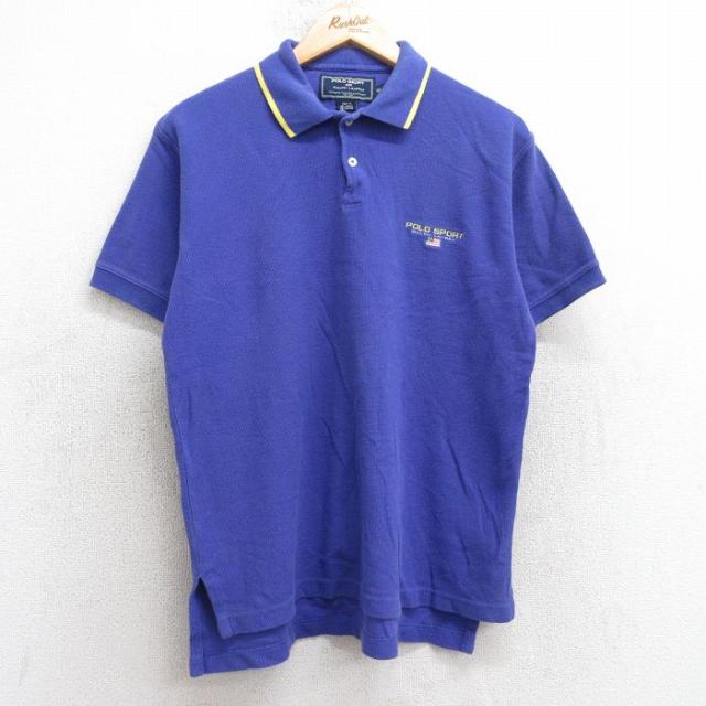 古着 ラルフローレン Ralph Lauren ポロスポーツ 半袖 ブランド ポロ シャツ メンズ ワンポイントロゴ コットン 紫 パープル L 中古 古着
