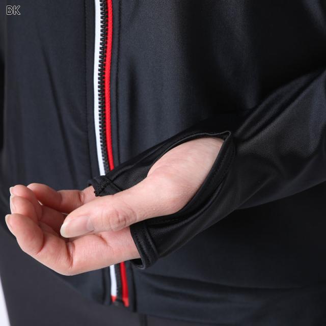 2way方向に良く伸びる速乾素材のフルジップジャケット。