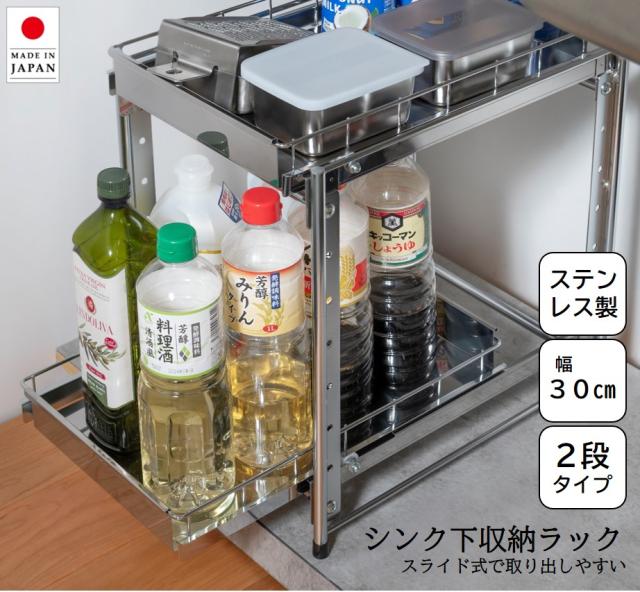 オビタス YMG-022-OV ステンレス製引出しラック2段 幅30(シルバー)燕三条製[YMG022OV] 返品種別A