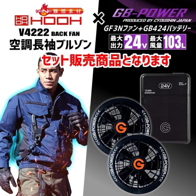 【即日発送】空調服 バックファン 難燃シリーズ 長袖ブルゾン HOOH V4222 バッテリー&ファンセット GB-POWER 24V 難燃 耐炎 耐熱 防炎性 制電性 コットン ジャケット フルハーネス対応 空調作業服 フルセット ファン付きウェア 村上被服